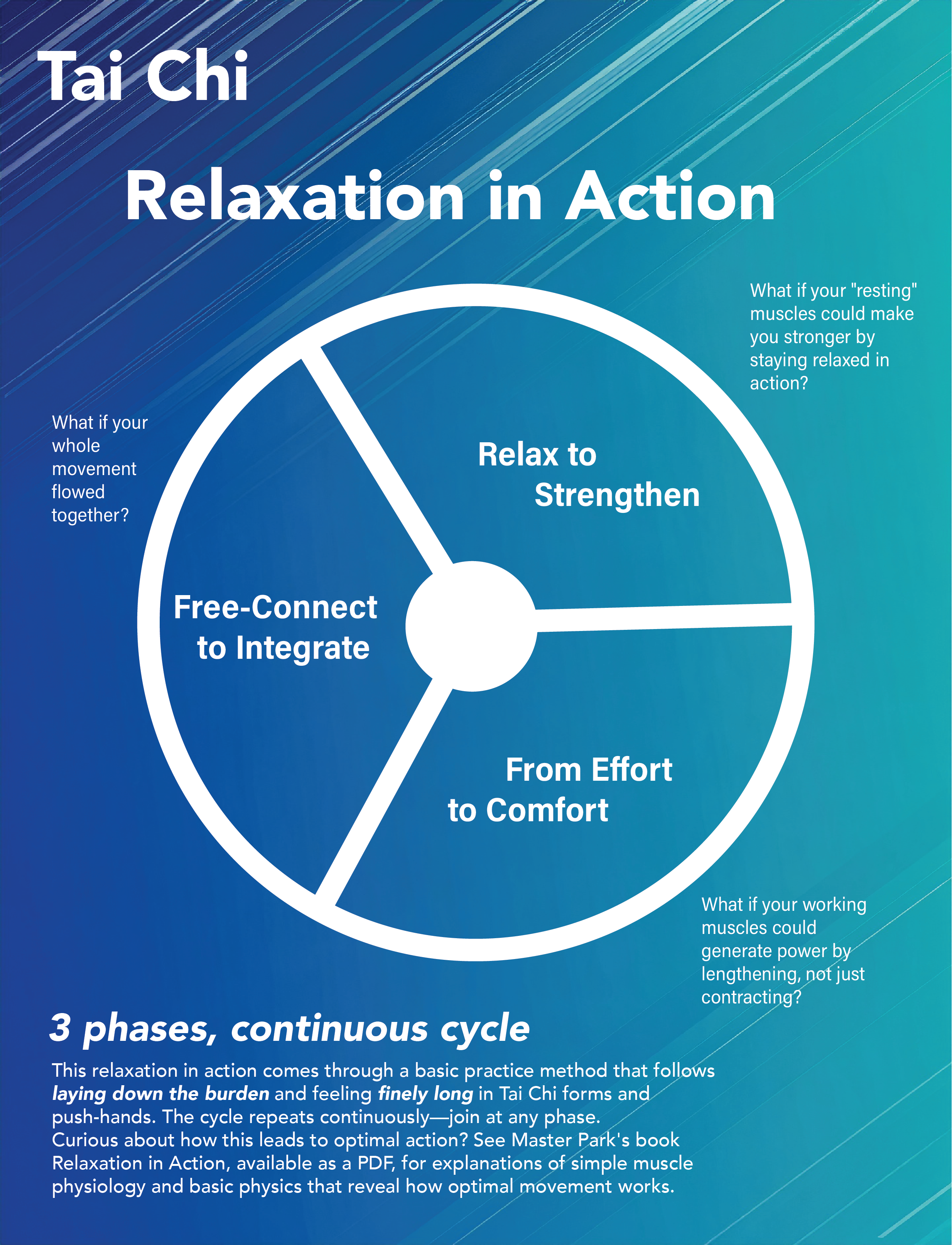 Each session guides you through the practice of "laying down the burden" and "finely long"—the core methods for discovering relaxation-in-action in Tai Chi forms and movement.